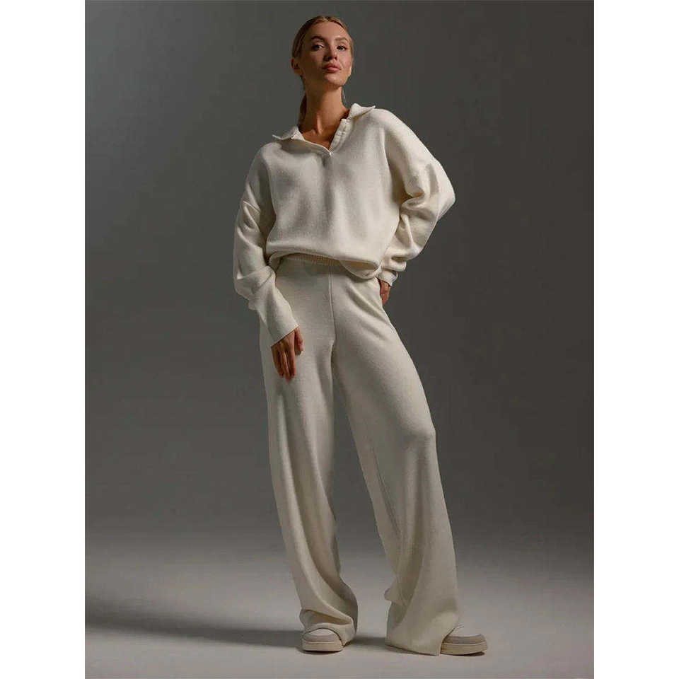 Conjunto Deportivo Personalizado con Estampado Puff, Ropa de Otoño, Estilo Urbano, Pantalones Anchos y Sudadera con Cuello en V para Mujer