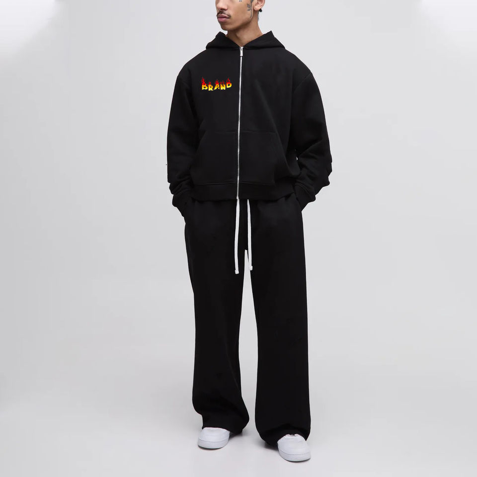 Custom Puff Impreso Logo Hombres Sudaderas con capucha de algodón Pantalones de chándal Conjunto de 2 piezas Jogging Sweatsuit Streetwear Oversized Zipper Chándal