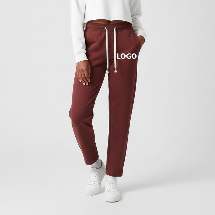 Pantalones Deportivos de Algodón para Mujer, Estilo Jogger, Pierna Recta, Cintura Regular, Estampado Personalizado por Transferencia de Calor, Parte Inferior Abierta