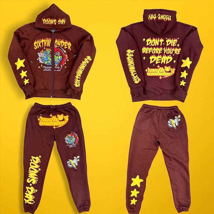 Personalizado Puff impresión Logo acampanado pantalones de chándal y Sudadera con capucha Conjunto Fabricantes de ropa Algodón Sweatsuit Chándal para hombre