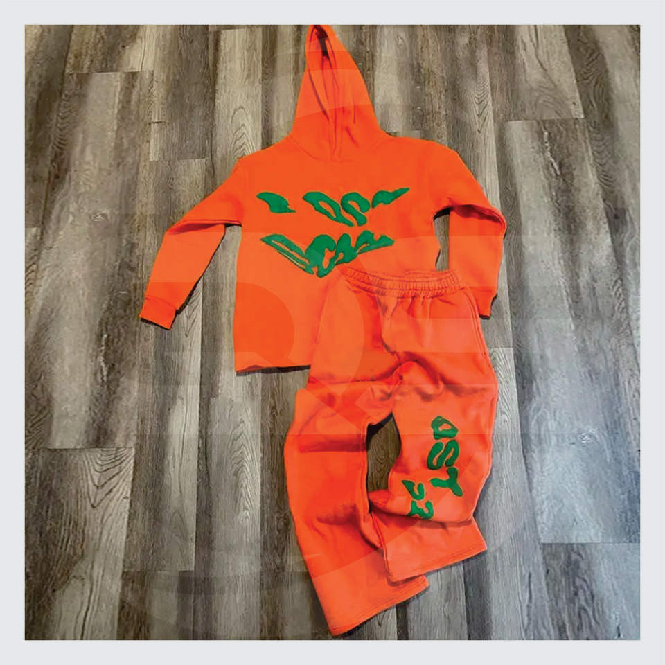 Custom Puff impresión 100% algodón francés Terry chándal Raw Hem corte y coser Sudadera con capucha pantalones de chándal y Jogger Set Active Bottoms