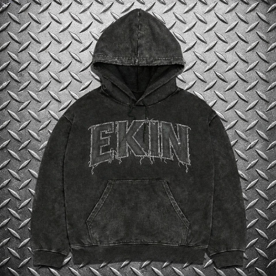 Sudadera con Capucha Personalizada, Lavada al Ácido, Estilo Desgastado, Corte Regular, Tejido Grueso, 100% Algodón, Transpirable, Estilo Hip Hop Urbano para Otoño