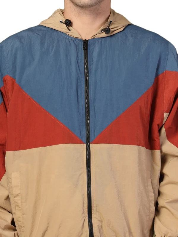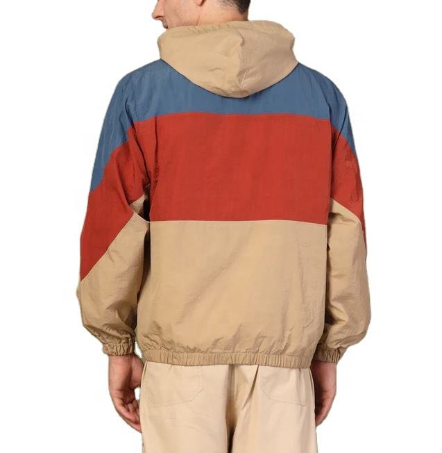 Chaqueta Cortavientos Personalizada con Bloques de Color, Media Cremallera, Cortavientos, Ligera, de Nailon para Hombre