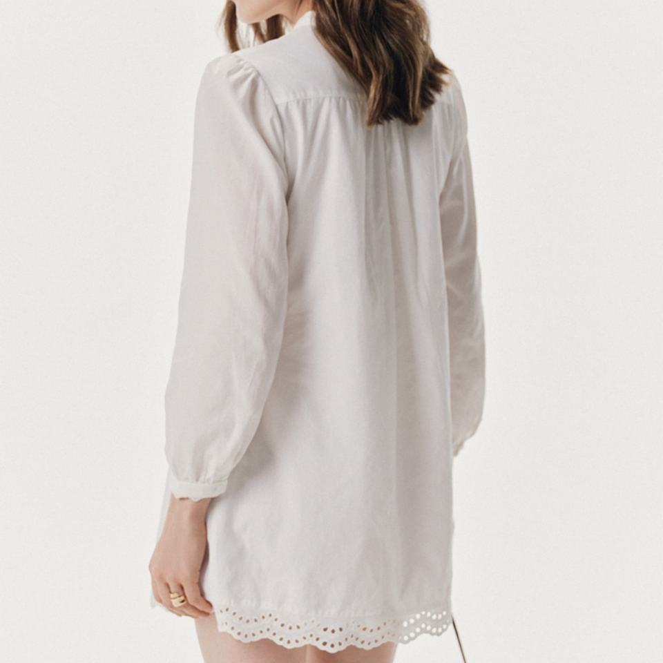 Vestido Mini Elegante de Manga Larga Blanco para Mujer, 100% Lino Tejido de Color Puro, Ecológico y Lavable