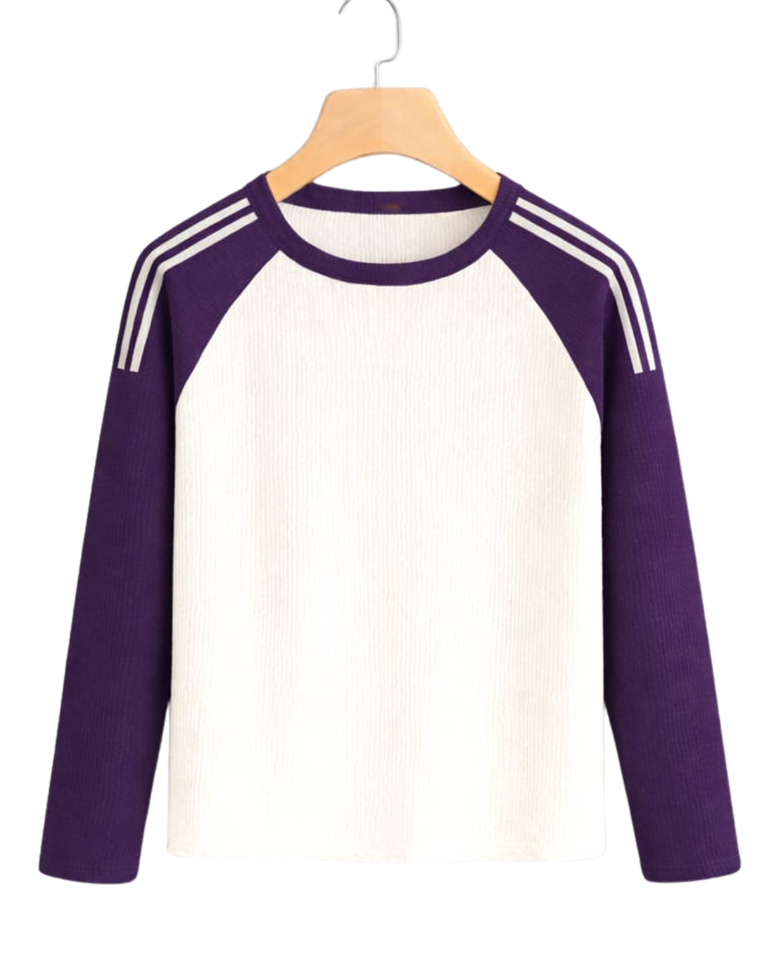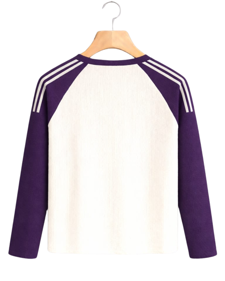 Camiseta de Manga Larga Raglán Personalizada en Morado y Blanco para Hombre, Cuello Redondo, 100% Algodón, Estilo Casual de Béisbol, Fabricante y Proveedor OEM