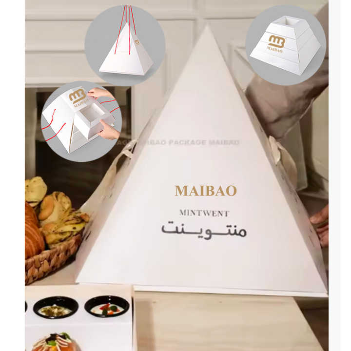Caja Piramidal Personalizada para Compartir Pasteles y Postres, Caja de Regalo en Forma de Pirámide para Tablas de Embutidos, Nuevo Diseño de Caja de Catering para Comida para Llevar con Forma Piramidal