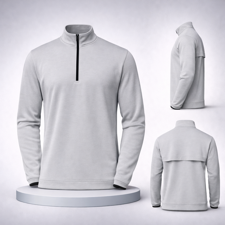 Servicio OEM y ODM, Fabricante Profesional de Ropa, Sudadera Personalizada de Alto Rendimiento con Cierre de Media Cremallera, Color Gris, para Entrenamiento al Aire Libre