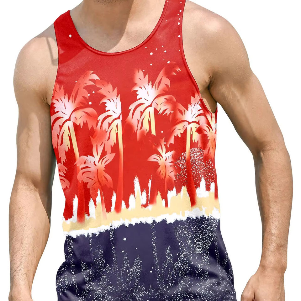 Camiseta sin mangas de secado rápido personalizada, camiseta sin mangas con estampado de sublimación de tinte para hombre, camiseta sin mangas para gimnasio y fitness de verano para hombre