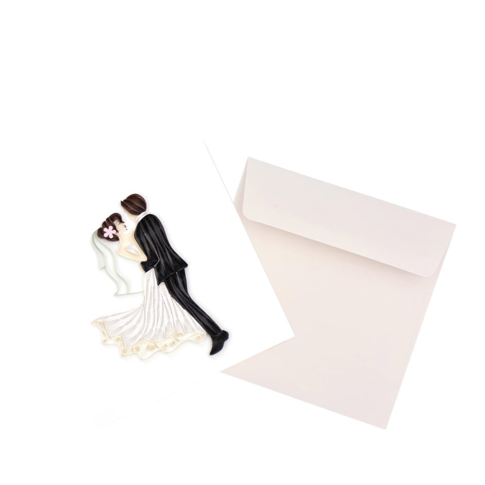 Tarjeta de quilling personalizada con diseño de pareja bailando, tarjeta de felicitación hecha a mano para boda con sobre, tarjeta de quilling con tema de amor para regalos