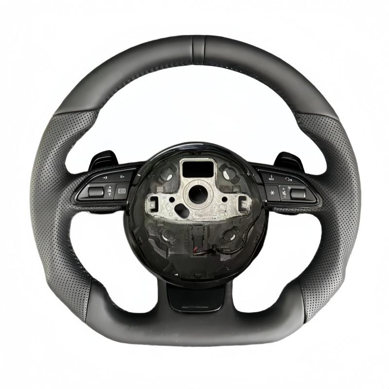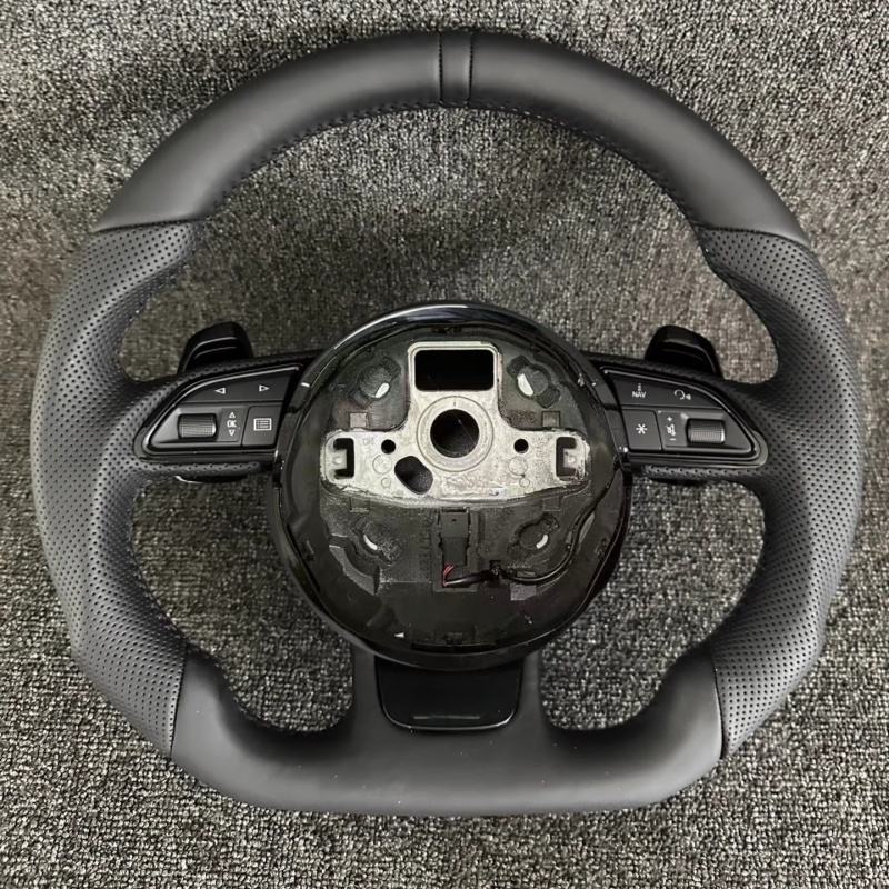 Volante Deportivo Personalizado Estilo RS SLine, Base Plana, Cuero Semiperforado, para Audi A3 A4 B7 A6 C7 R8 RS3 A7 RS5 RS6 A8 Q5 Q7