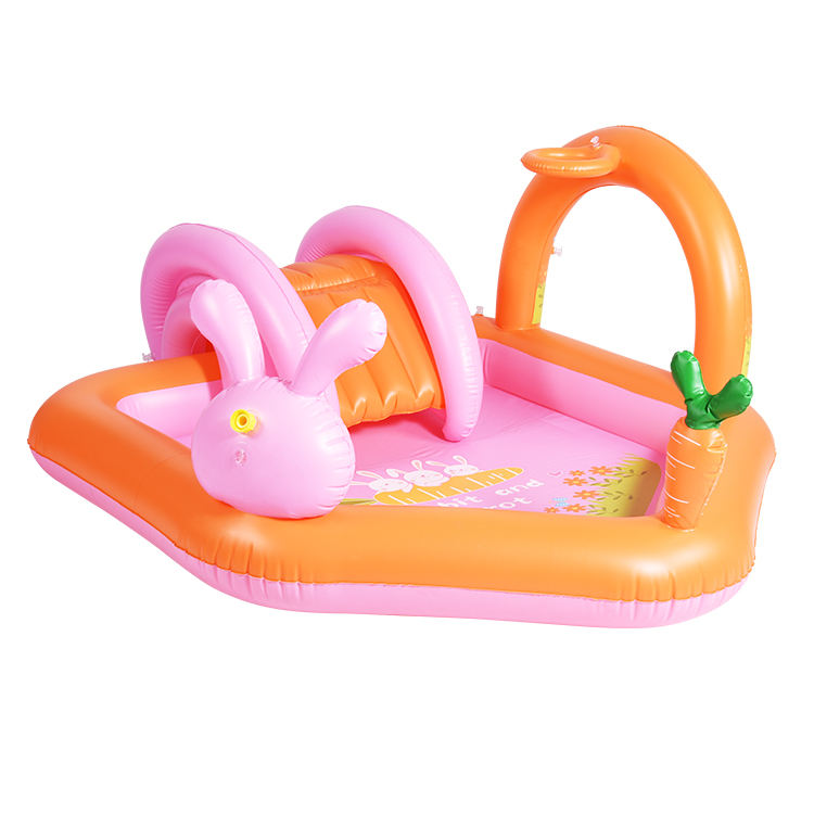 Piscina inflable con tema de conejo personalizado para niños, centro de juegos de PVC con tobogán de agua extraíble y piscina infantil