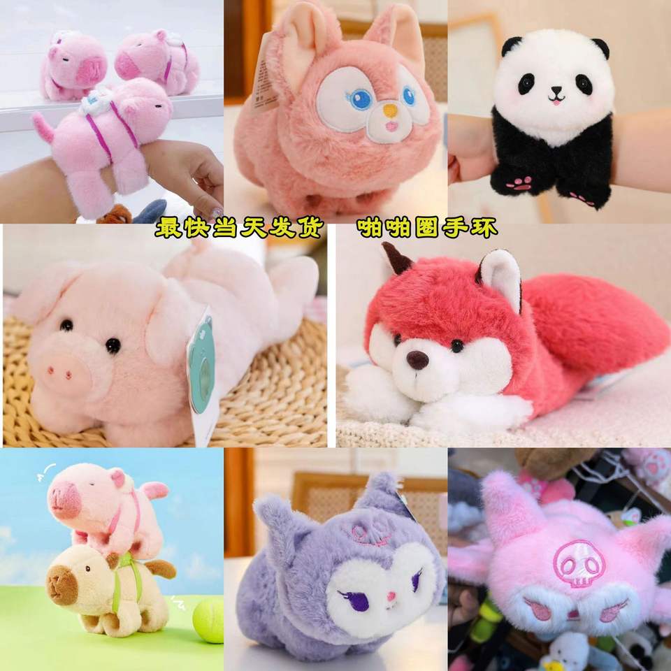 Juguete de peluche de mapache personalizado, sonajero de mano de capibara con anillo de sujeción, pulsera de animales de peluche, pulsera de golpeo