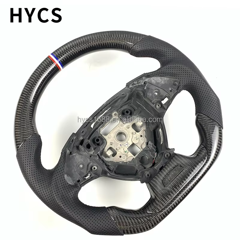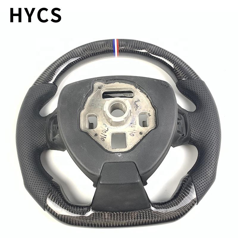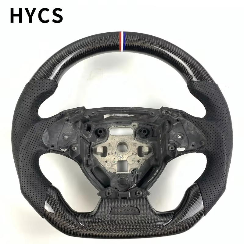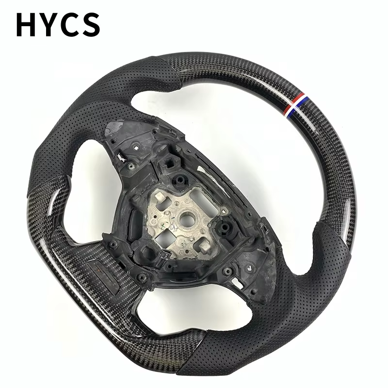 Volante Deportivo Personalizado para Interiores de Auto, Cubierto en Cuero Negro Perforado con Fibra de Carbono para Chevrolet Camaro C6 C7 C8