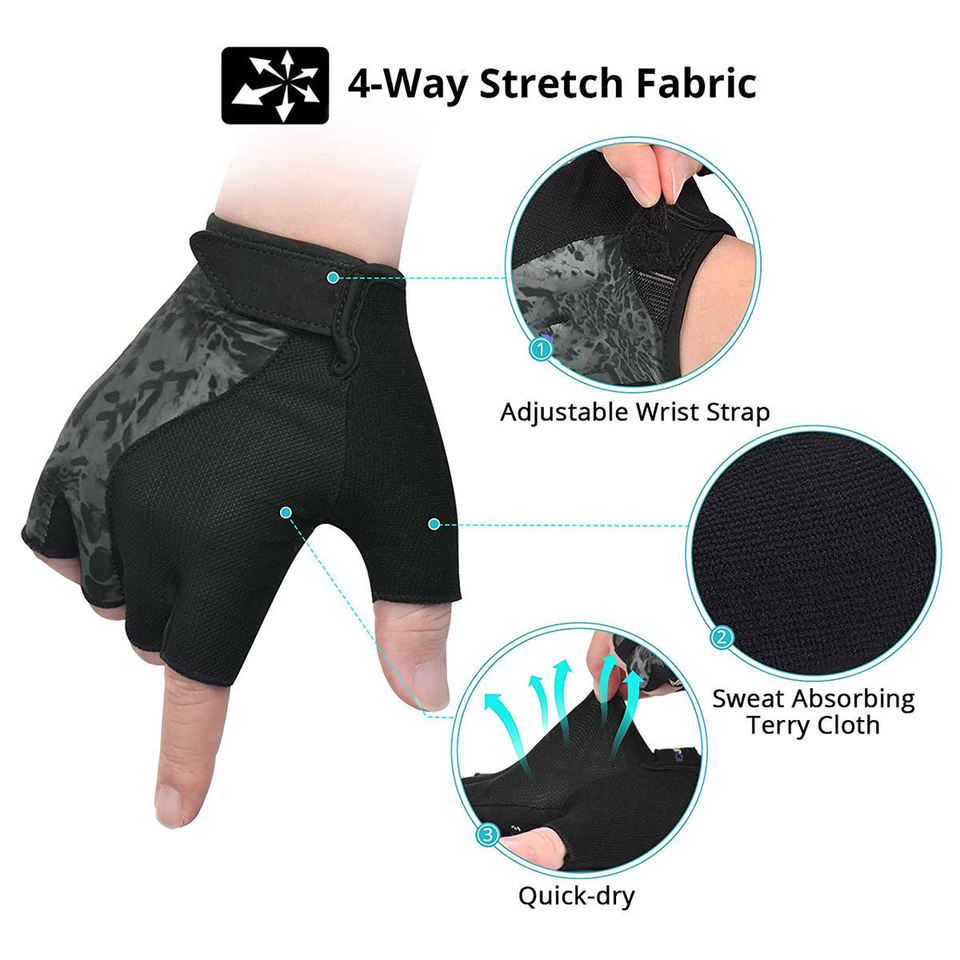 Estirar, Antideslizante, Correa de muñeca ajustable, que absorbe la humedad, Mitad de dedo/sin dedosCaracterísticas