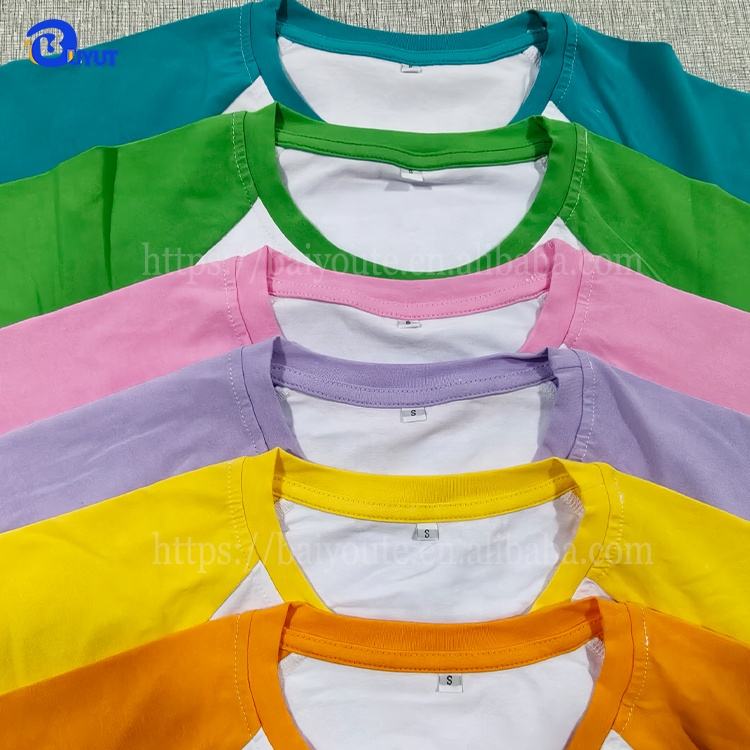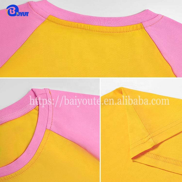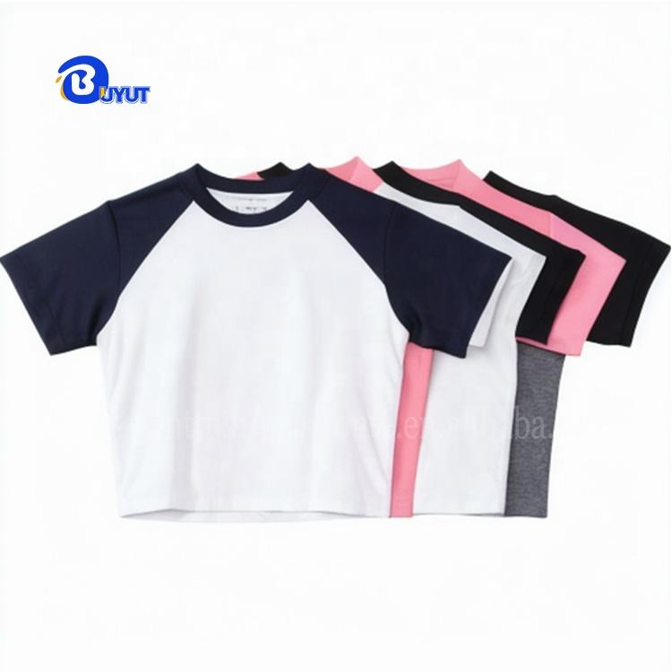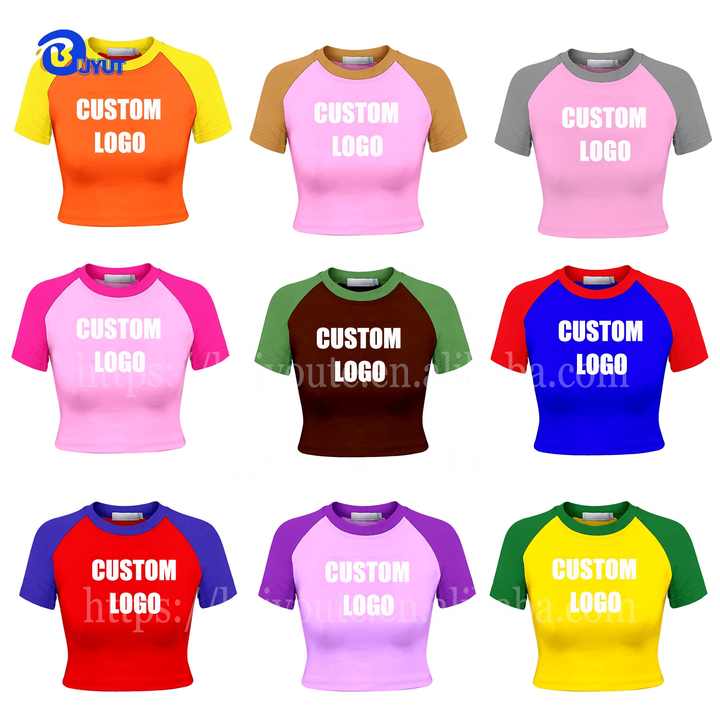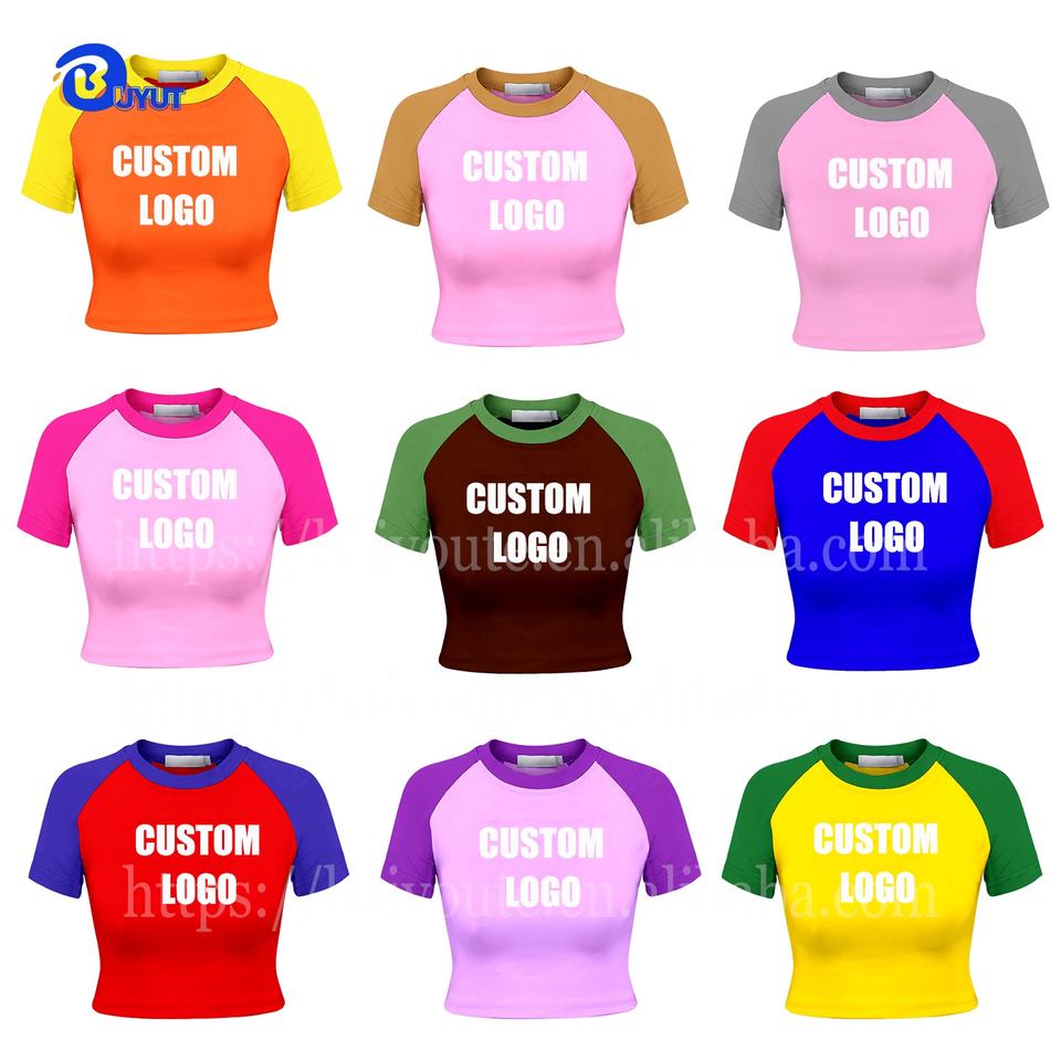 Camiseta de manga raglán personalizada con logotipo DTG, conjunto de mujer, Camiseta básica de bloque de Color, Camiseta de algodón 2025, camiseta de manga corta a la moda para mujer