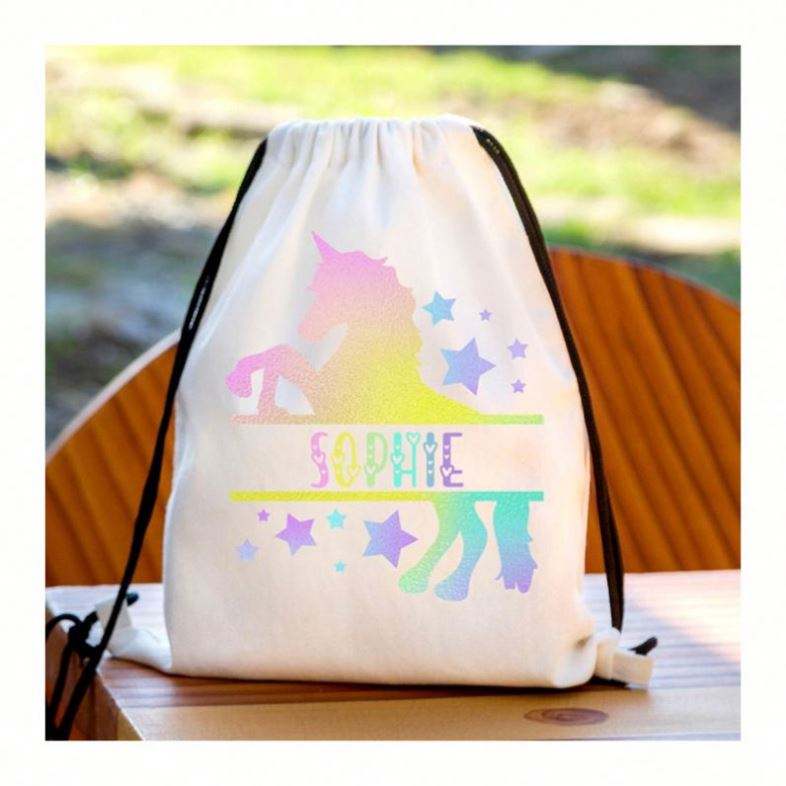 Bolsa de Gimnasio con Cordón de Unicornio Arcoíris Personalizada, Mochila Escolar para Niñas, Diseño Personalizado