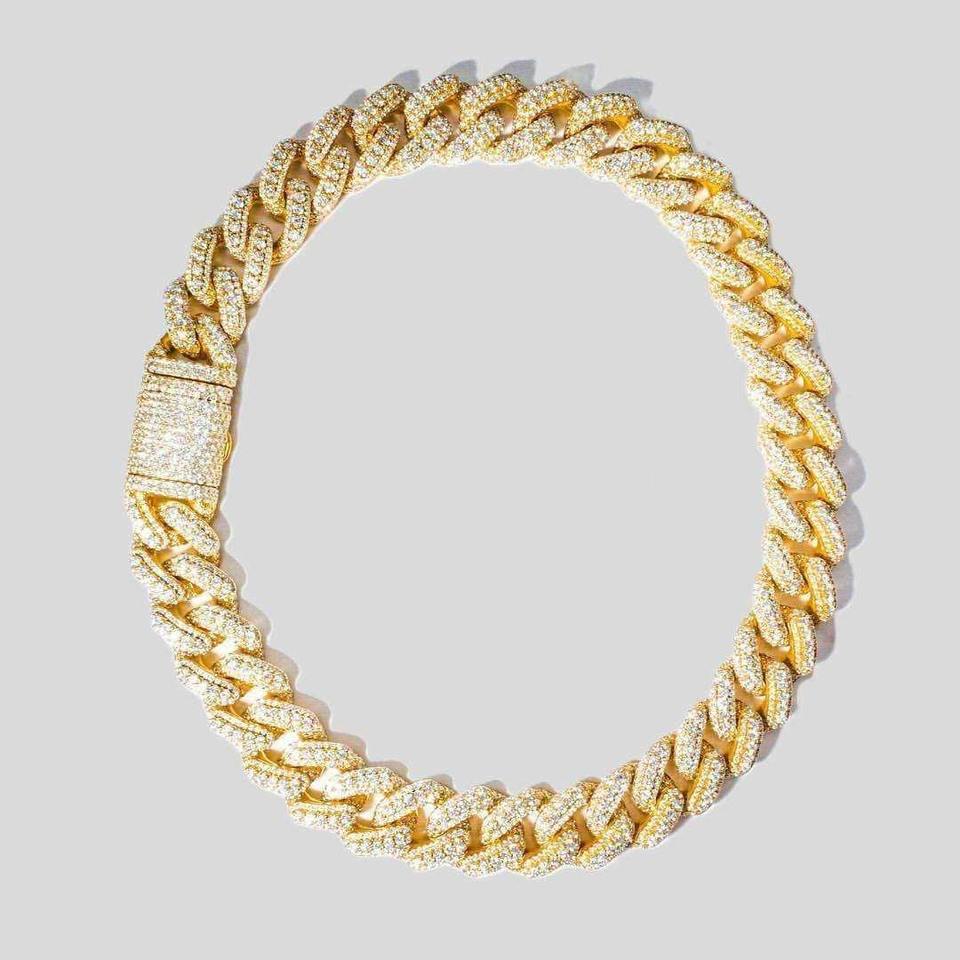 Collar de Cadena Cubana con Diamantes y Acabado Dorado, Estilo Urbano para Raperos, Joyería de Moda al por Mayor para Hombres