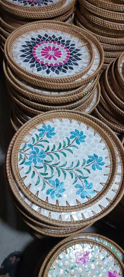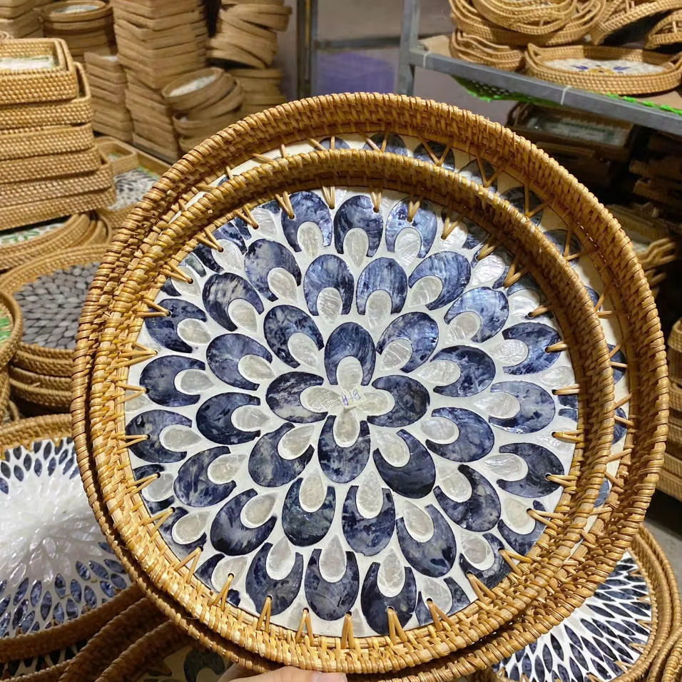 Bandeja de mimbre personalizada, bandeja de bambú decorativa artesanal para servir