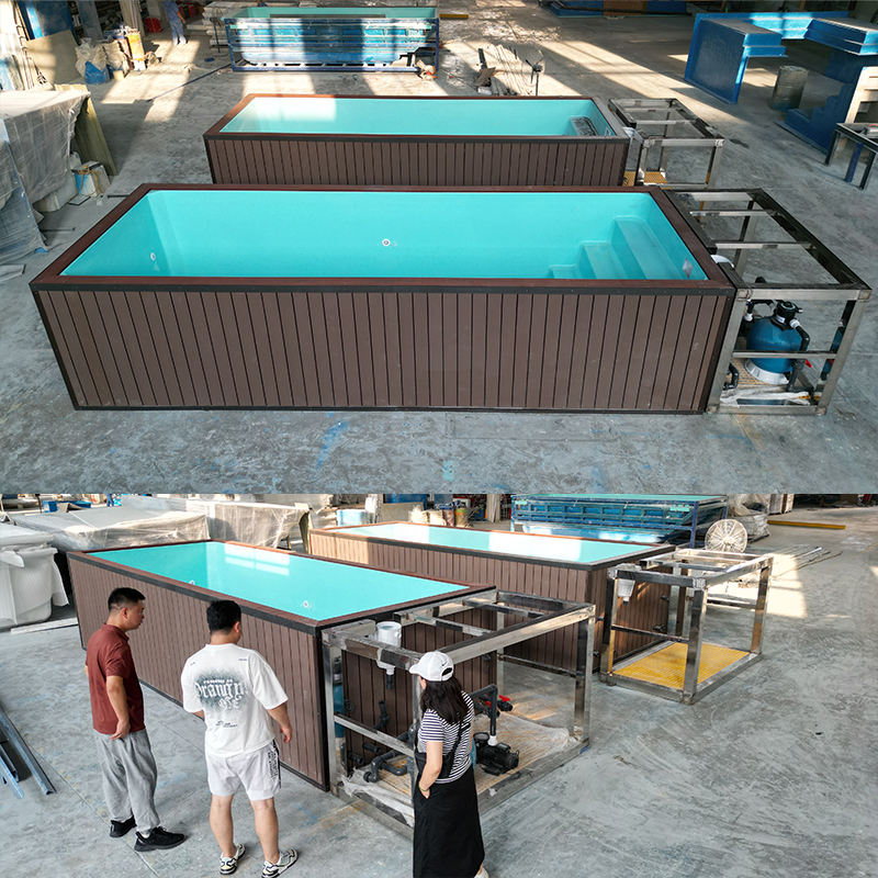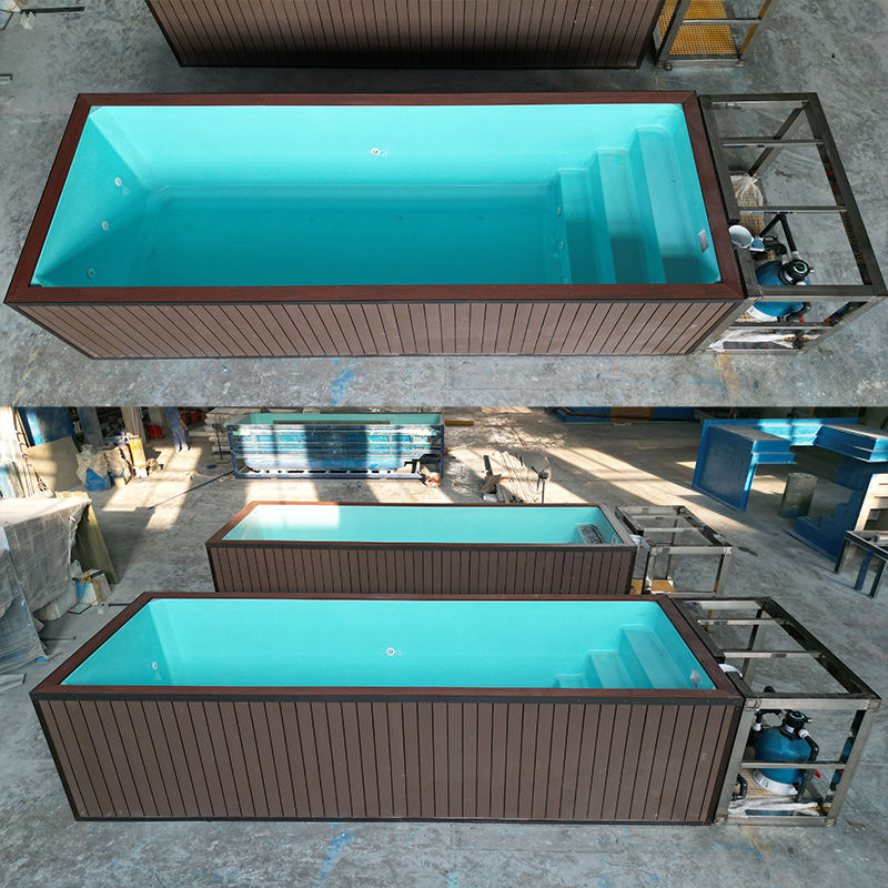 Personalizado listo para uso al aire libre de vidrio acrílico 20 pies 20 pies 30 pies 40 pies de fibra de vidrio contenedor de envío piscina