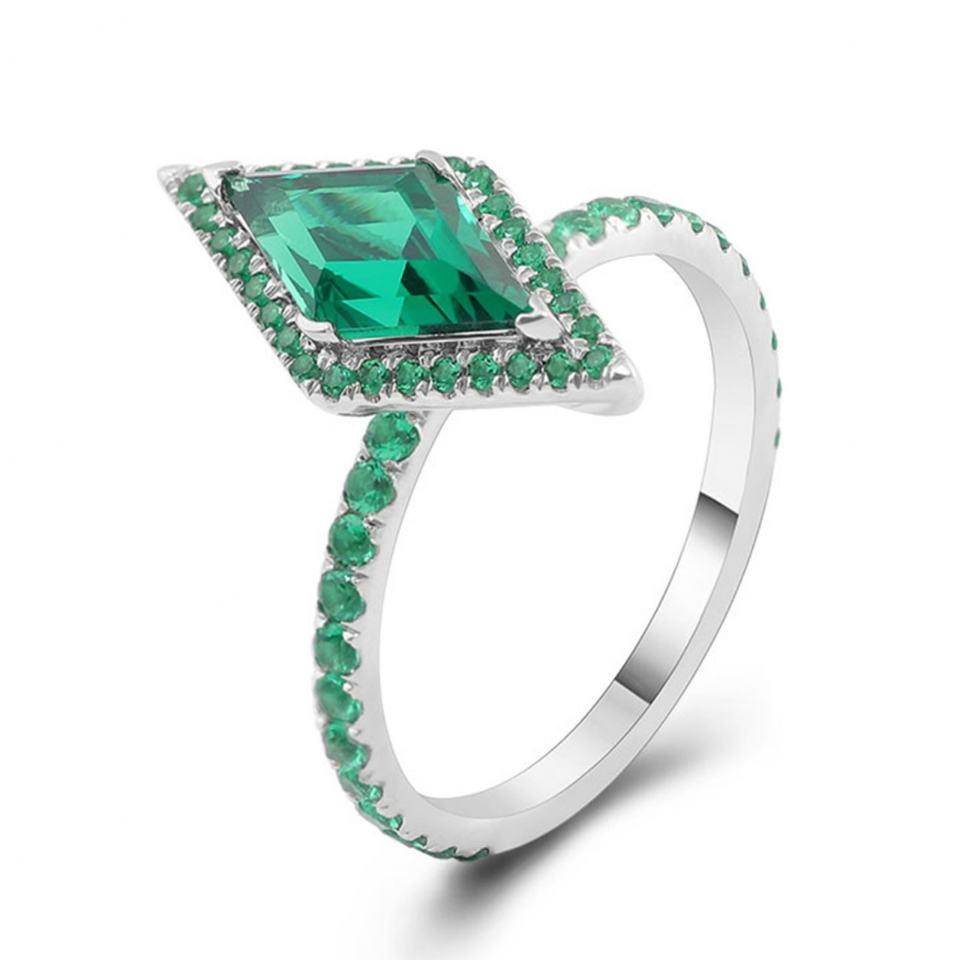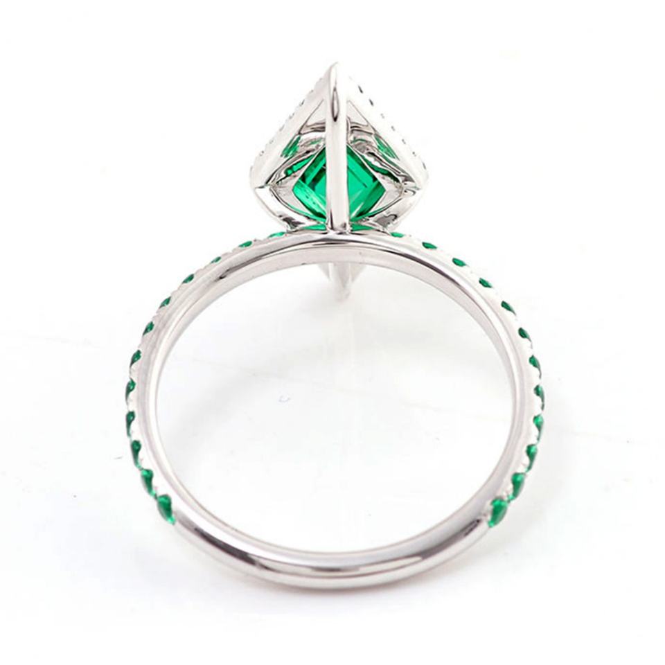 Anillo de Oro Sólido de 18k Personalizado, Anillo Fino de Alta Calidad con Esmeralda Cultivada en Laboratorio de Zambia de 6*12mm, Anillo de Compromiso con Halo para Mujer