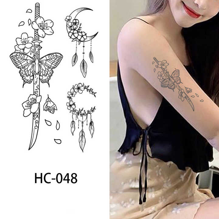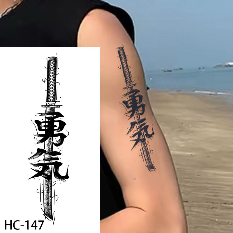 Pegatina de tatuaje temporal de espada realista personalizada para hombres y mujeres tinta semipermanente de larga duración