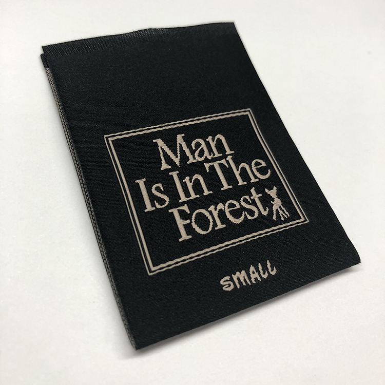 Etiqueta tejida hecha de reciclaje personalizada, etiqueta de cuello de ropa de alta densidad de Damasco, etiquetas de bandera de marca de diseño de logotipo moderno a la moda