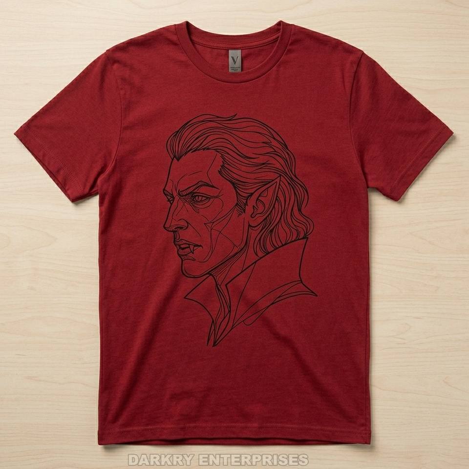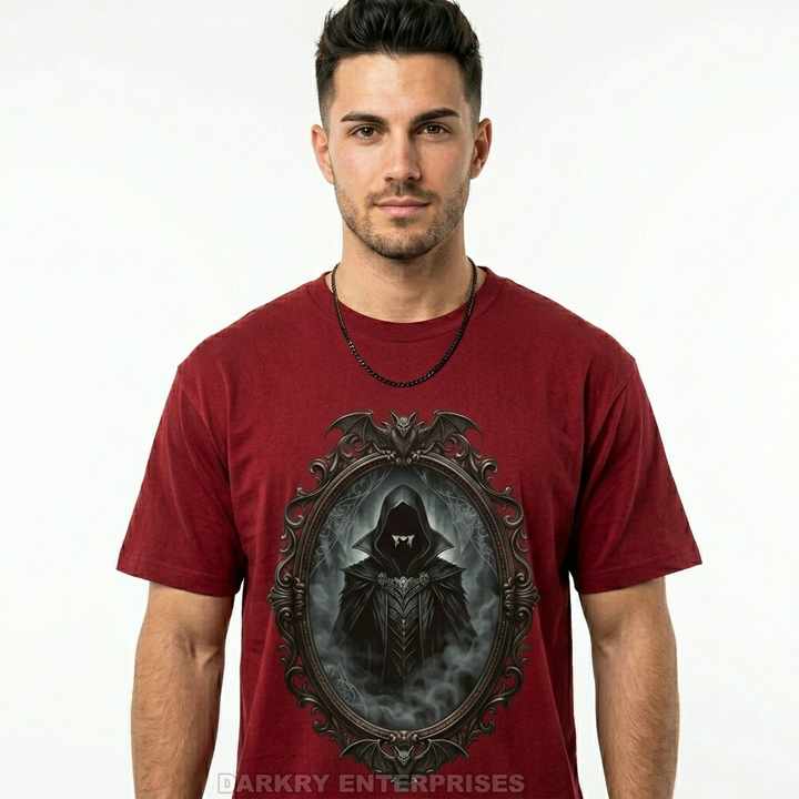 Camiseta Roja Personalizada para Hombre, Diseño Gráfico de Retrato de Vampiro Gótico, Estilo Victoriano, Algodón Grueso, Proveedor de Camisetas Streetwear al por Mayor