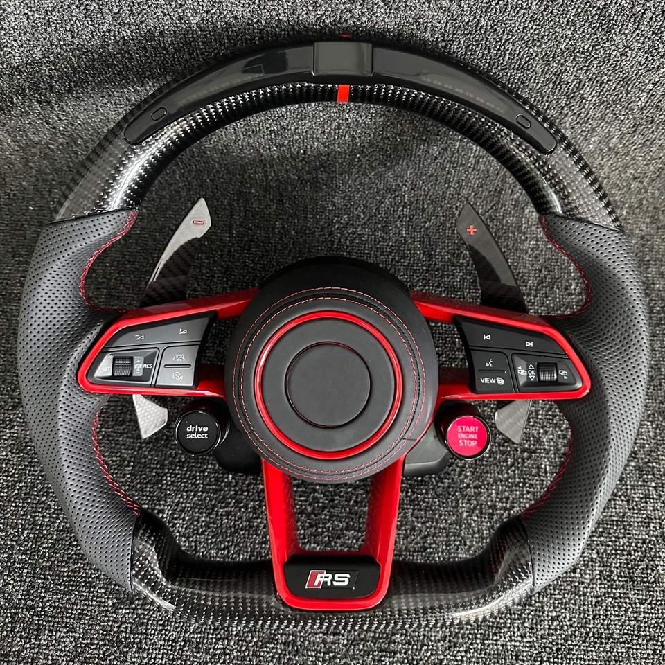 Volante Deportivo Personalizado de Fibra de Carbono y Cuero Semiperforado con Detalles Rojos LED para VW MK8 MK7 MK6 Golf R GTD GTE Polo GTI Golf8 Golf7