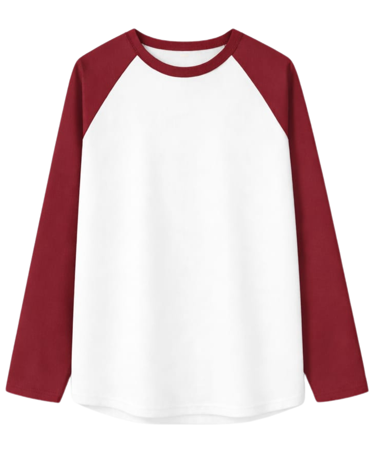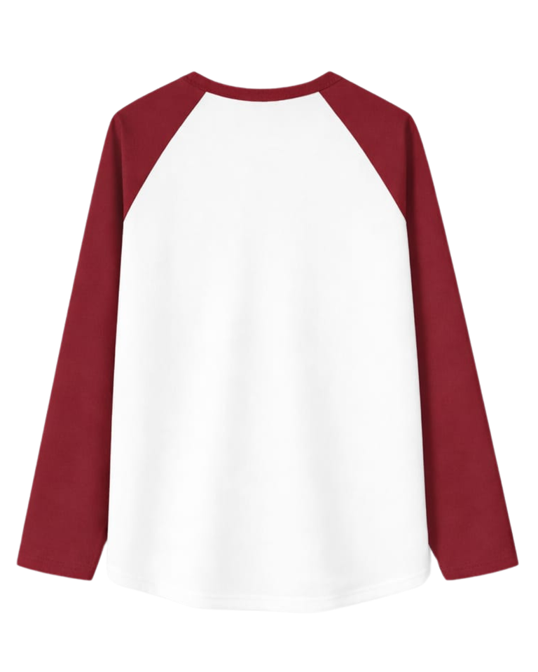 Camiseta de Manga Larga Raglán Roja y Blanca Personalizada para Hombre, Camiseta Casual de Algodón con Cuello Redondo en Contraste, Camiseta de Béisbol, Fabricante y Proveedor OEM