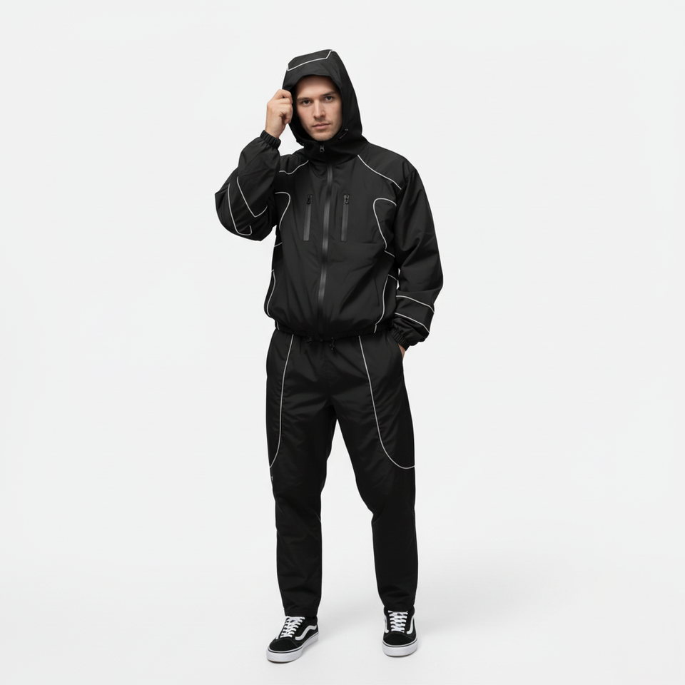 Conjunto de chándal reflectante personalizado, cortavientos para hombre, chándal de nailon, conjunto cortavientos personalizado