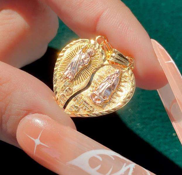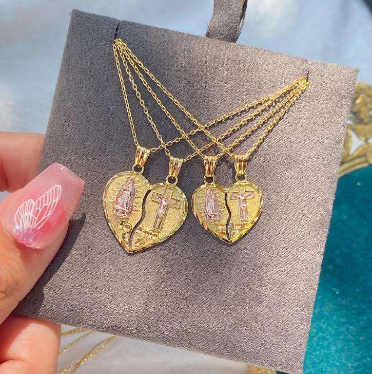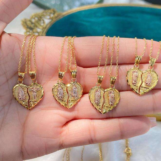 Joyería religiosa personalizada Chapado en dos colores corazón Virgen María Guadalupe COLLAR COLGANTE joyería