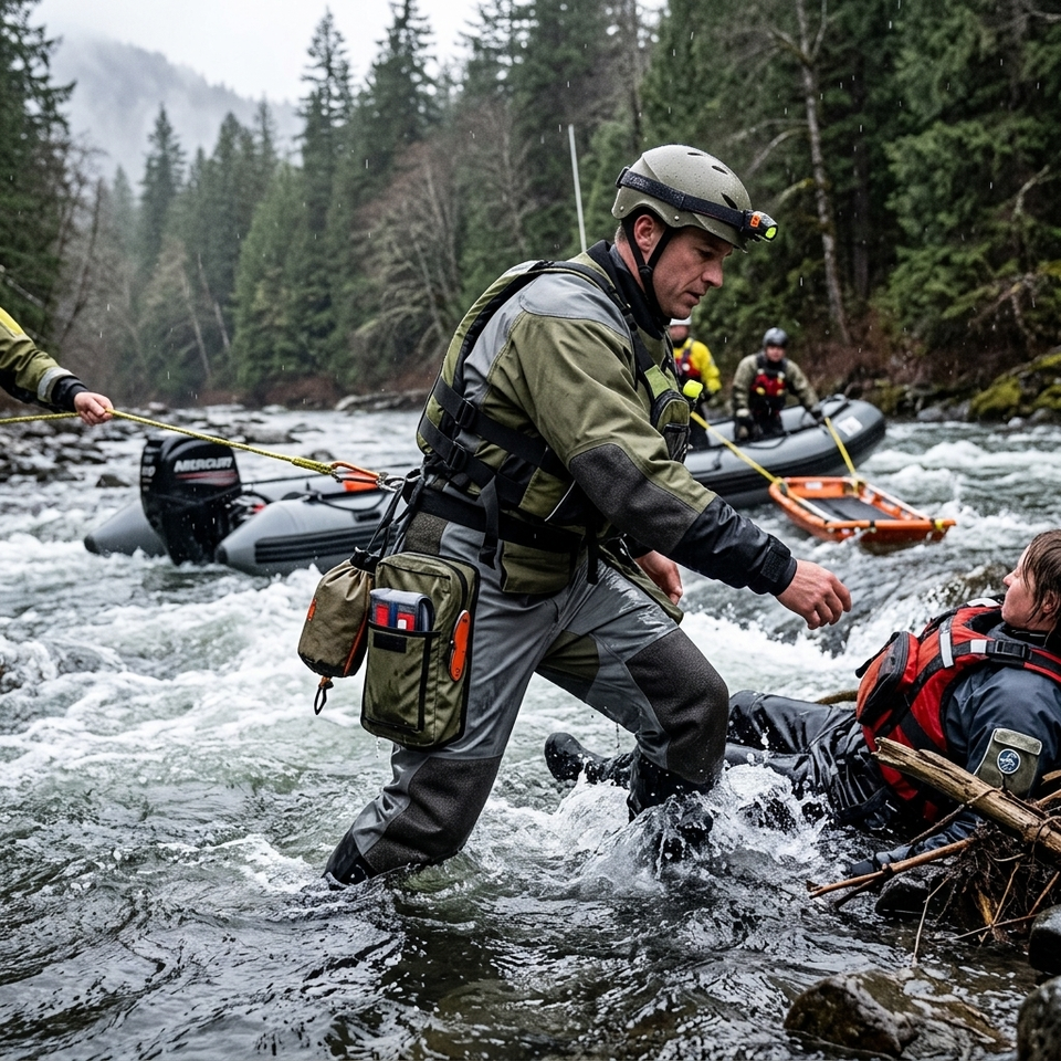 Traje de Rescate Personalizado OEM Impermeable Ligero Trilaminado con Protección de Rodilla de Kevlar y Sellado de Muñeca/Cuello SI-TECH en el Pecho
