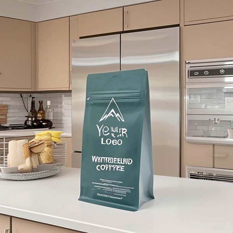 Soporte de refuerzo lateral de fondo plano resellable personalizado bolsa de cremallera de café bolsas de embalaje de granos de café Válvula de humedad para alimentos para mascotas