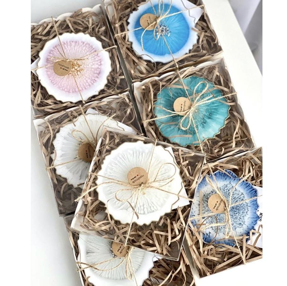 Posavasos de resina personalizados con acento dorado Posavasos de epoxi hechos a mano