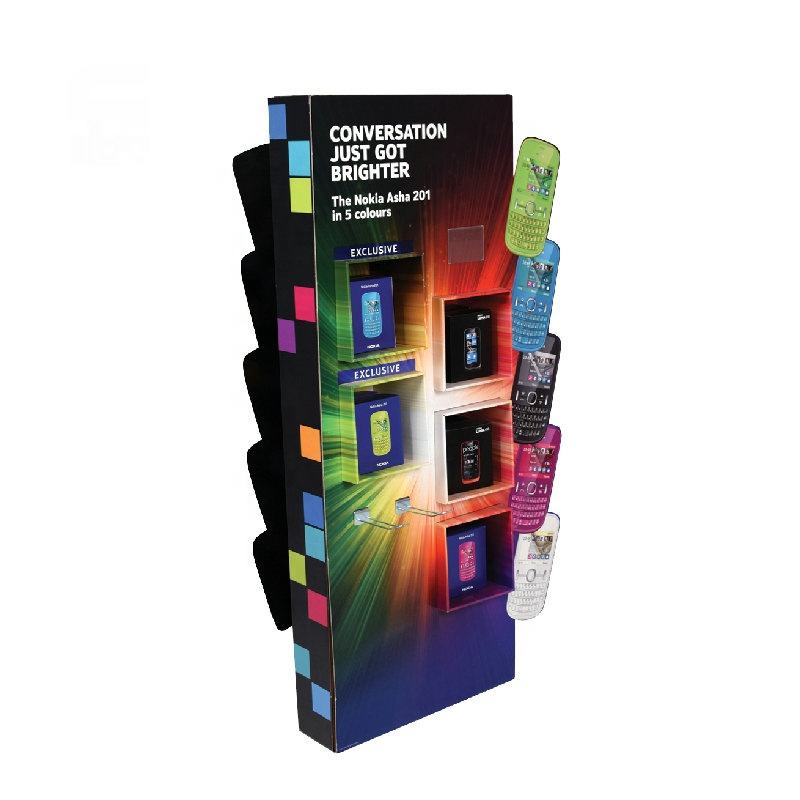 Soporte personalizado para suelo POP, accesorio de exhibición para teléfono móvil, gancho de cartón, promoción