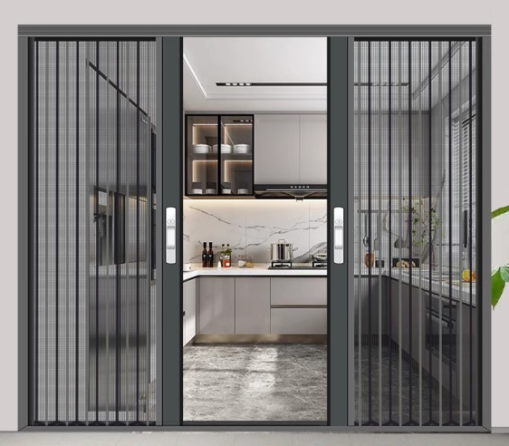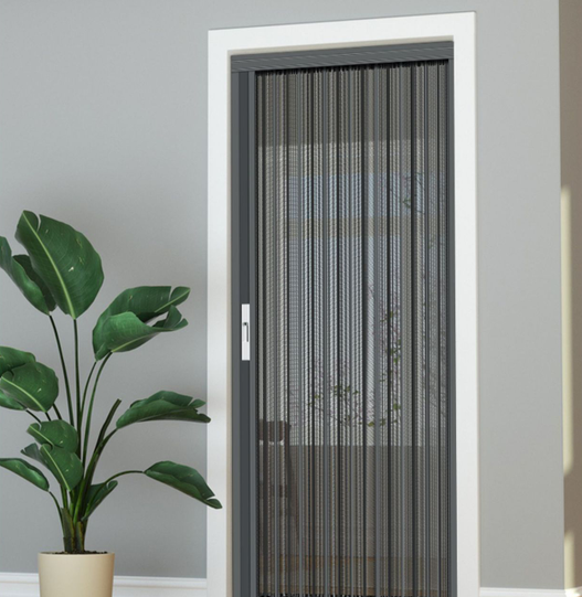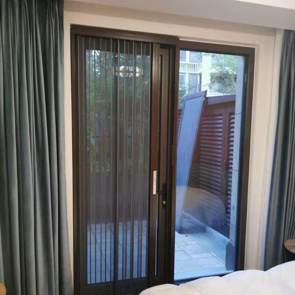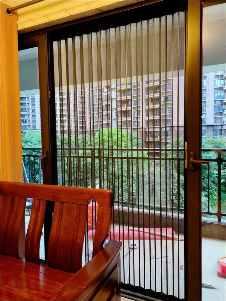 Puerta de pantalla retráctil personalizada anti-mosquito gato perro pantalla invisible de acero dorado aleación de aluminio malla plana Puerta de pantalla deslizante