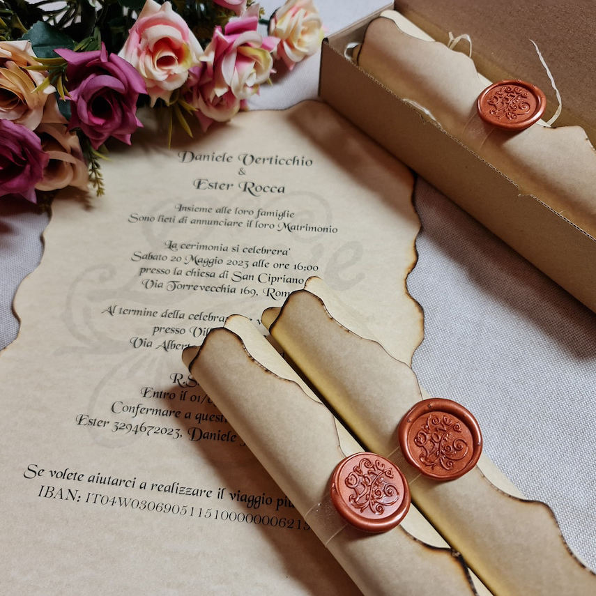 Carta de desplazamiento de origen de marca histórica retro personalizada Tarjeta de agradecimiento con logotipo en relieve Caja de sello de cera roja Impresión envejecida de doble cara