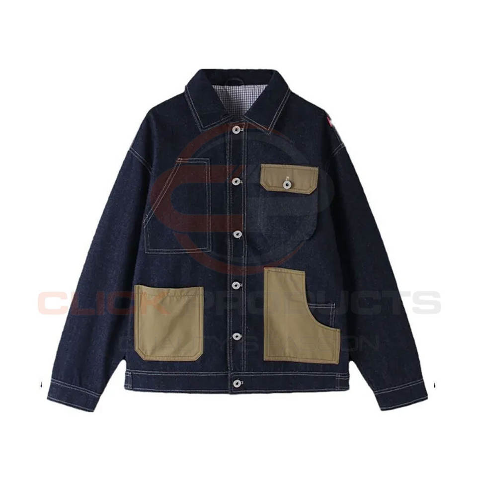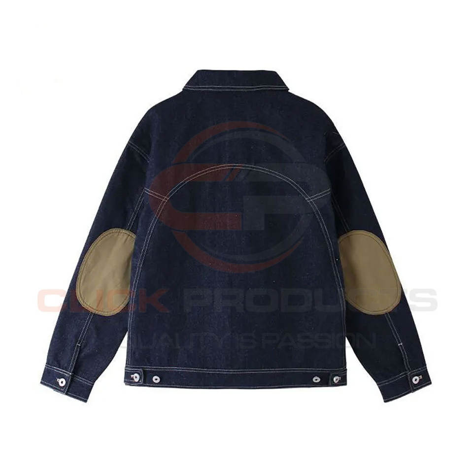 Chaqueta vaquera de estilo retro personalizada, chaqueta vaquera holgada de talla grande, chaqueta vaquera tejida de algodón con estilo para hombre