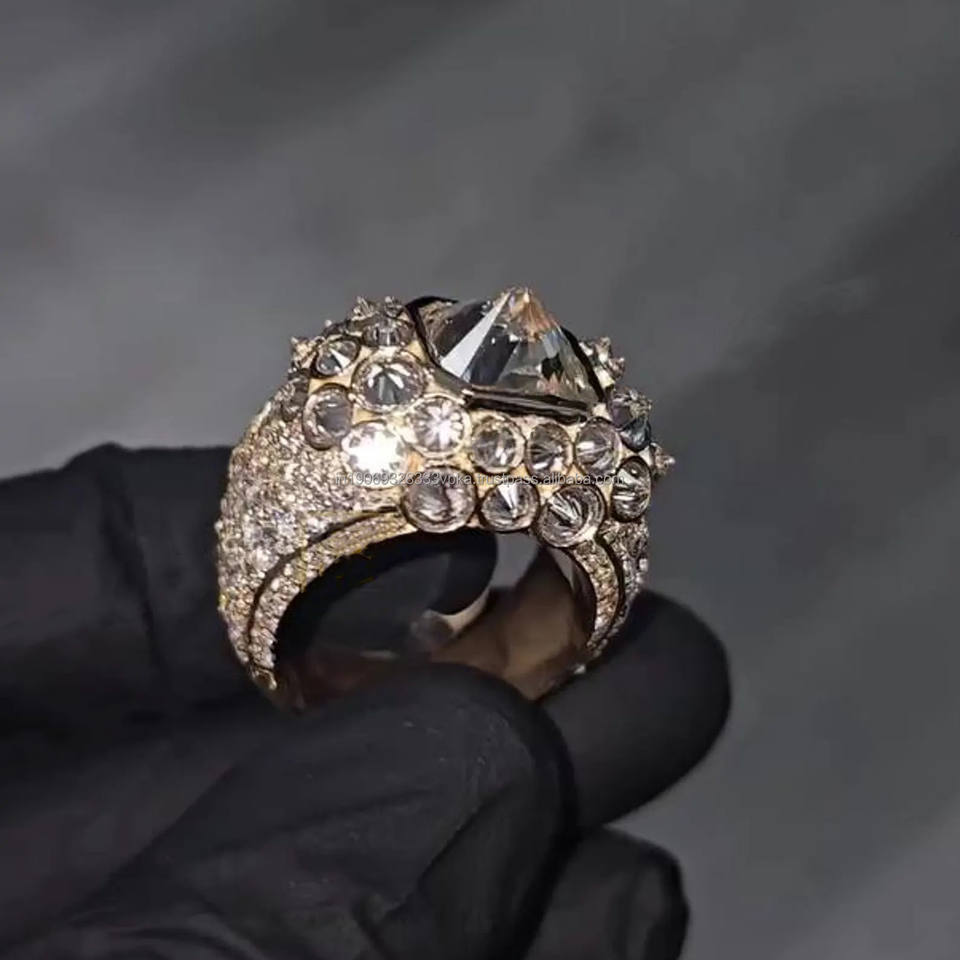 Anillo de Diamantes Moissanite con Corte Inverso Personalizado, Estilo Hip Hop, Chapado en Rodio, Plata de Ley 925, Unisex, para Hombre y Mujer, Regalos de Joyería