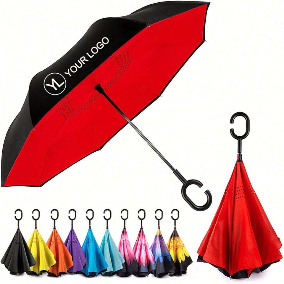 Paraguas de Coche Invertido Personalizado, Reversible, Manos Libres, Resistente al Viento, Negro, Rojo, Rosa, Económico