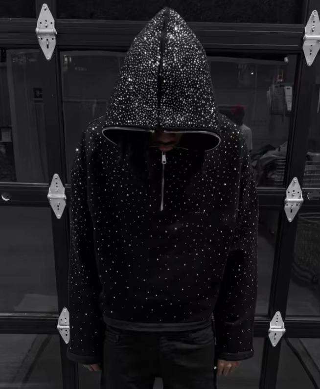 Sudadera con capucha de pareja de diamantes de imitación personalizada esqueleto calavera diseño de cremallera completa sudaderas con capucha ostentosas al por mayor precio de fábrica Sudadera con capucha de diamantes de imitación