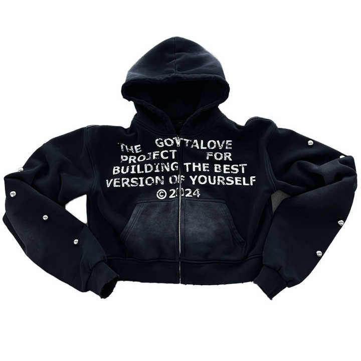 Conjunto de Sudadera Corta y Pantalones Deportivos Personalizados con Pedrería | Ropa Urbana de Peso Pesado | Colección de Moda