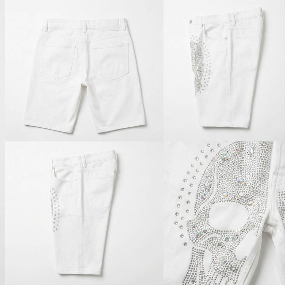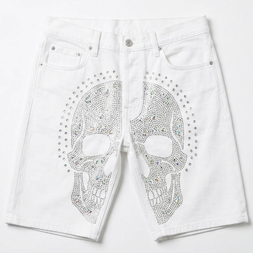 Fabricante de Shorts de Mezclilla con Pedrería Personalizados, Fábrica OEM ODM, Producción de Alta Capacidad con Equipo de Soporte para Exportación Global