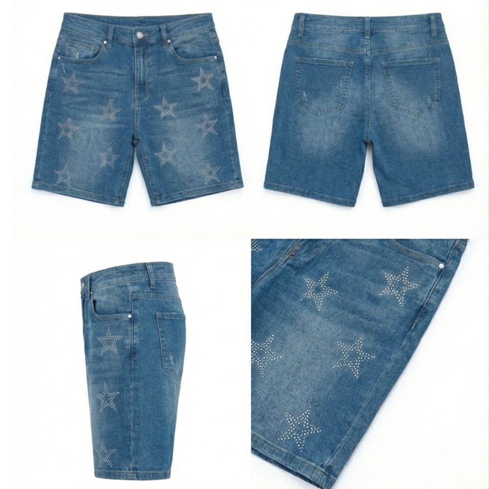 Fabricante de Shorts de Mezclilla con Pedrería Personalizados, con Soporte para Desarrollo de MOQ Bajo para Marcas Emergentes