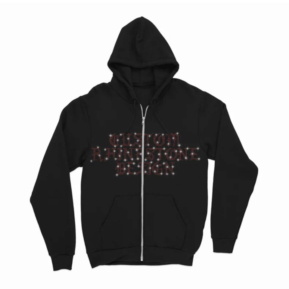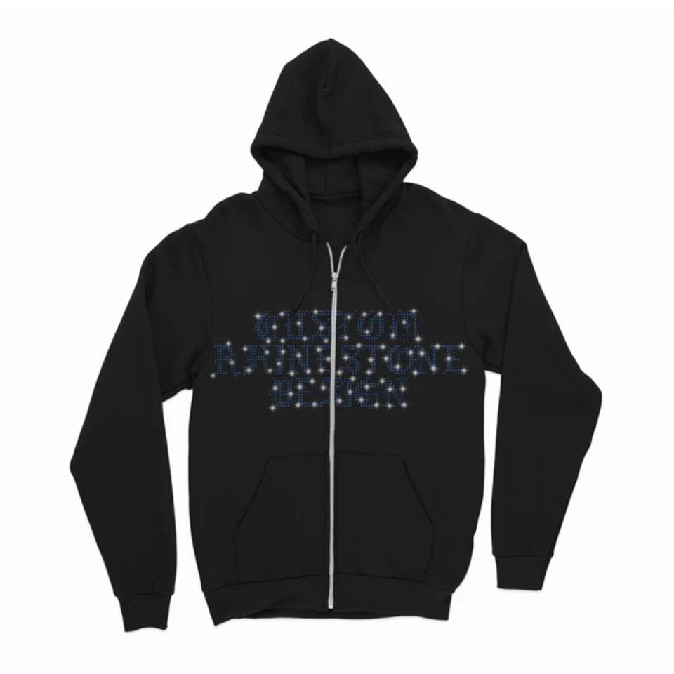 Sudadera con capucha con cremallera negra para hombre con diseño de diamantes de imitación personalizados Sudadera con capucha de mezcla de algodón con cremallera bloqueada en color básico para hombre