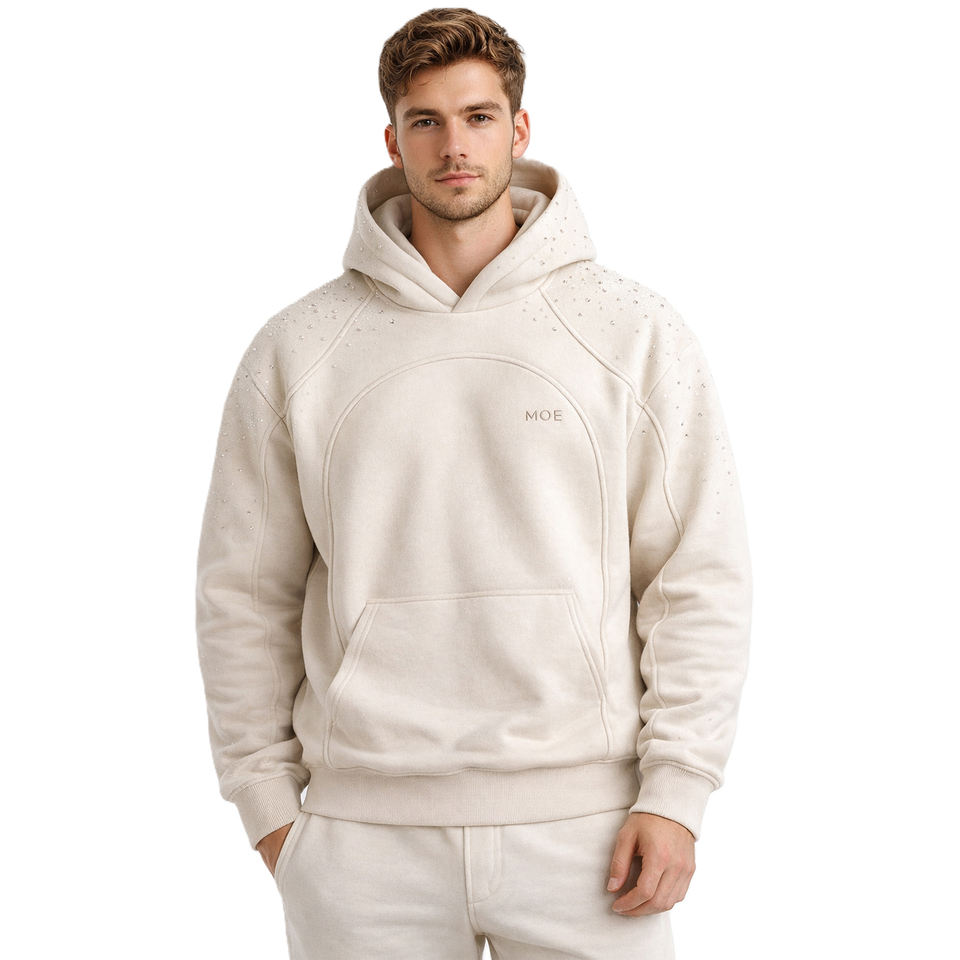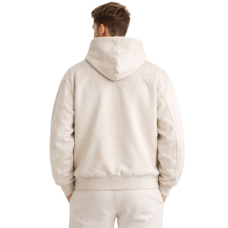 Sudadera con Capucha Personalizada con Detalles de Pedrería para Hombre, Sudadera de Felpa de Algodón para Hombre, Ropa Urbana de Alta Calidad, Producción con MOQ Bajo
