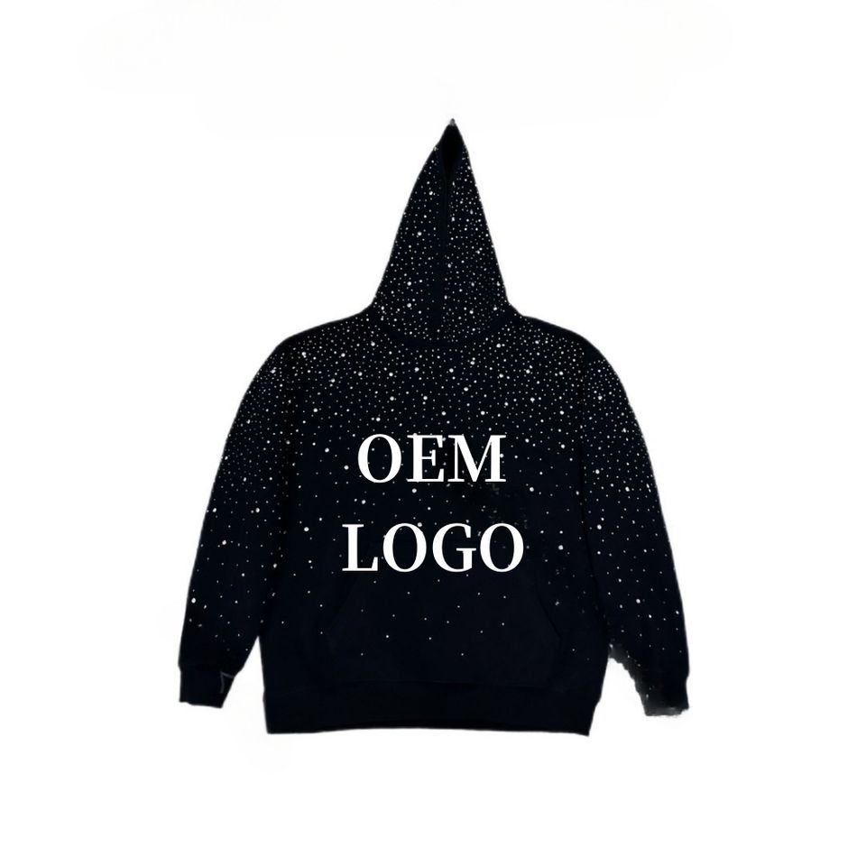 Sudadera con Capucha de Invierno para Hombre con Diamantes de Imitación Personalizados, Sudadera Holgada de Alta Calidad OEM con Tela de Felpa de 450 g/m²
