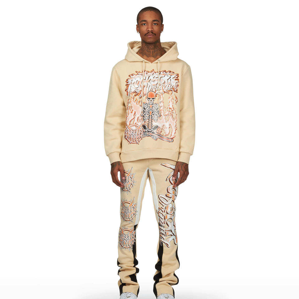 Conjunto de Sudadera con Capucha y Pantalones Acampanados con Pedrería Personalizada, Estilo Urbano