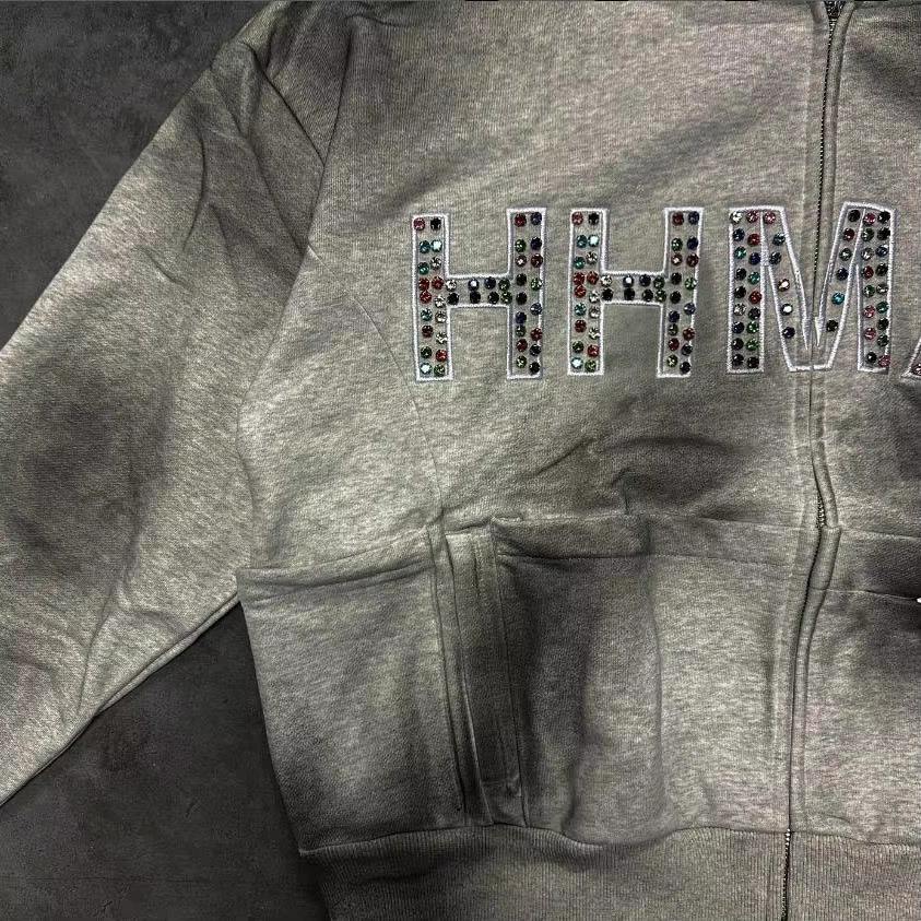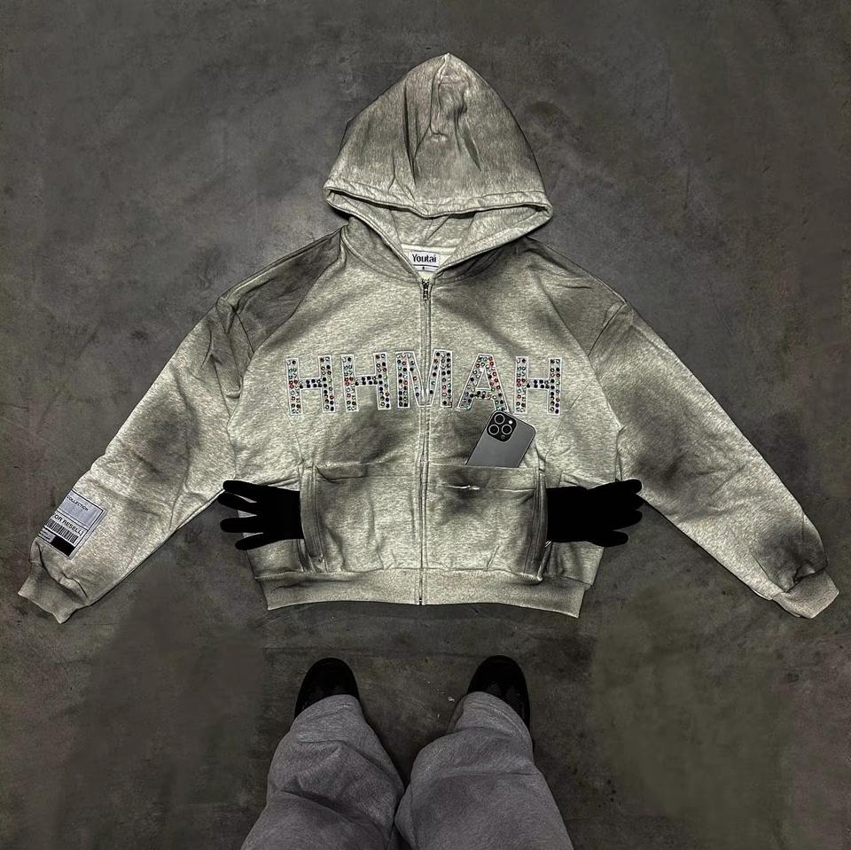 Sudadera con Pedrería Personalizada para Hombre, Sudadera de Algodón Grueso con Pedrería de Araña, Diseño Personalizado, Ropa Urbana de Invierno, 340 GSM