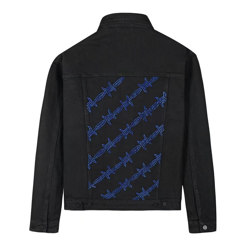Chaqueta Vaquera Personalizada con Pedrería para Hombre, Estilo Hecho a Mano, Elegante Chaqueta Vaquera con Pedrería para Hombre, Chaqueta de Mezclilla Negra, Chaquetas para Hombre